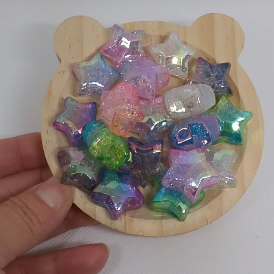 Iridescence Star Beads - gradient crackle effects - 10pcs